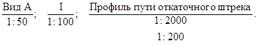 2.2. Разрезы, сечения, профили допускается выполнять в разных масштабах в горизонтальном и вертикальном направлениях. В таких случаях указывается вверху масштаб горизонтальный, а под ним - вертикальный, например: