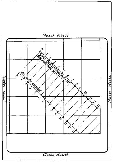 7.5.4. В случае непараллельности линий сетки линиям рамки чертежа координаты линий сетки следует указывать внутри рамки вдоль нижней и левой ее линий (черт. 28).