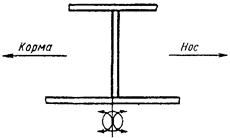 у металлических судов - по внутренней поверхности наружной обшивки (горизонтального киля);