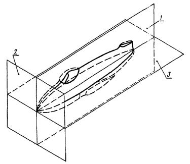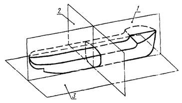 2.2. На теоретическом чертеже на трех основных координатных плоскостях геометрическую форму изделия и его составных частей изображают линиями пересечения теоретической поверхности изделия и его составных частей плоскостями, параллельными координатным (приложение 1).
