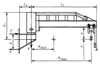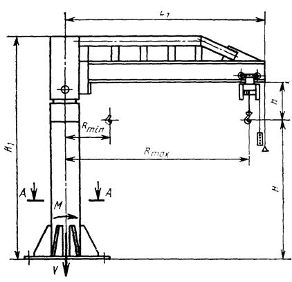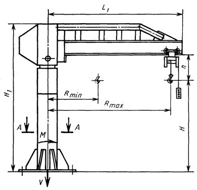 Пример условного обозначения крана с ручным поворотом консоли, типа 3, грузоподъемностью 1 т, с наибольшим вылетом крюка Rmax = 10 м и высотой подъема 2,5 м: