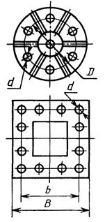 Присоединительные размеры опорных частей кранов типов 1, 2, 5, 6 должны соответствовать указанным на черт. 8 и в табл. 8, типов 3, 4, 7 - на черт. 9 и в табл. 9.