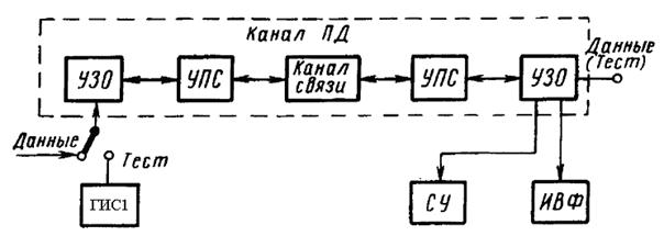 1.3.1. В канал ПД подают данные либо тест, вырабатываемый генератором испытательного сигнала (ГИС1).