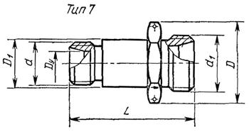 Конструкция и размеры присоединительной части штуцеров клапанов типа 7
