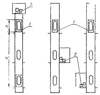 1 - кабина; 2 - дверь шахты