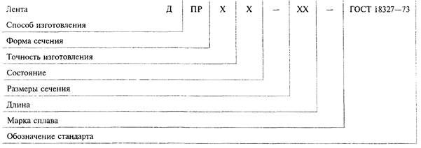 Пример условного обозначения холоднодеформированной ленты прямоугольного сечения, толщиной 0,50 мм, шириной 150 мм, немерной длины, из цинка марки Ц0: