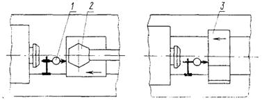 Перемещение под нагрузкой закрепленной на шпинделе оправки относительно поперечного суппорта и револьверной головки |