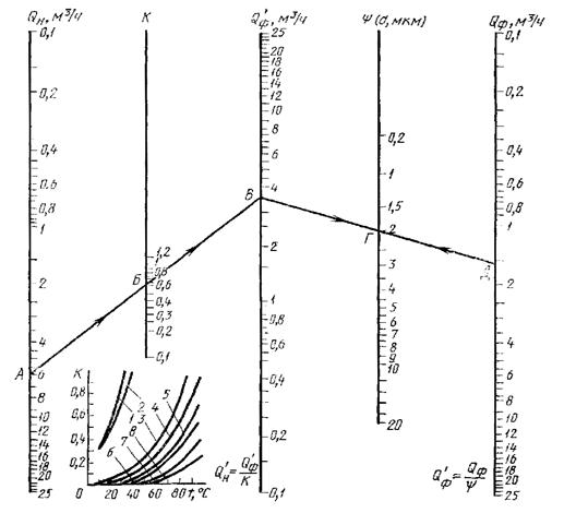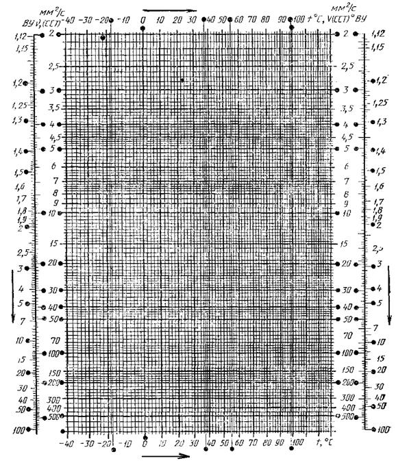 Значения вязкостей должны наноситься на номограмму «Вязкость - температура» (приложение 5, черт. 4). По нанесенным точкам строят график, по которому устанавливают температуру сепарации нефтепродукта при испытаниях.