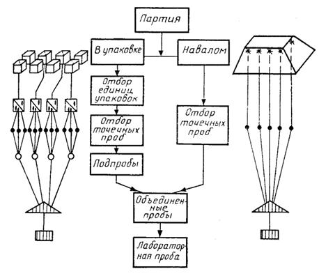 1) точечные пробы каждой части партии объединяют в подпробы, каждую подпробу подготавливают до лабораторной пробы и анализируют в отдельности;