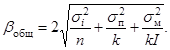 1.9. Если от партии отобрано п точечных проб и образовано k подпроб (состоящих из n/k точечных проб) и каждая подпроба проанализирована I раз, то общую погрешность определения показателя качества вычисляют по формуле