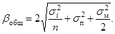 В частном случае при k = 1 и I = 2 (образована объединенная проба и проанализирована два раза) общую погрешность определяют по формуле