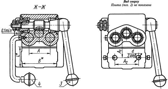 1 - корпус; 2 - плита по ГОСТ 16890; 3 - рукоятка; 4 - ручка применяется в кондукторе 7300-0261