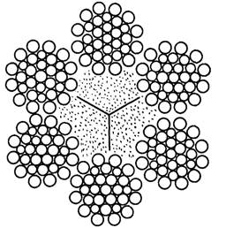 Шестипрядный канат 6´31 + 1 о. с.; 6 ´ 31 = 186 проволок с органическим сердечником (прядь каната 1 + 6 + 6 / 6 + 12).