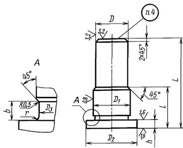 1. Конструкция и размеры хвостовиков с буртиком должны соответствовать указанным на чертеже и в таблице.