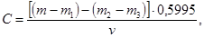 Массовую концентрацию раствора (С), выраженную в г/см3 титана, вычисляют по формуле