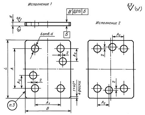 1. Конструкция и размеры подкладных плиток к державкам удлиненно-продолговатых пуансонов должны соответствовать указанным на чертеже и в таблице.