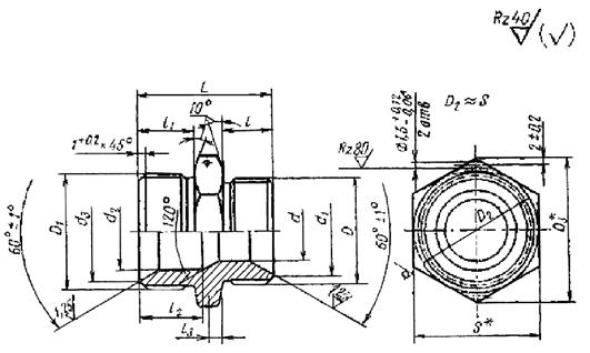 1. Конструкция и размеры прямых переходников должны соответствовать указанным на чертеже и в таблице.