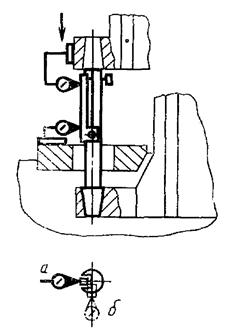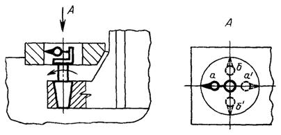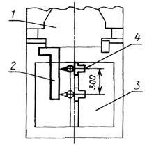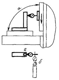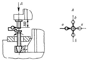 П. 5.412 Специальную опору последовательно устанавливают в верхнее, среднее и нижнее положения на поверхности салазок. Индикатор перемещают по специальной опоре в горизонтальной плоскости и измеряют отклонения. |