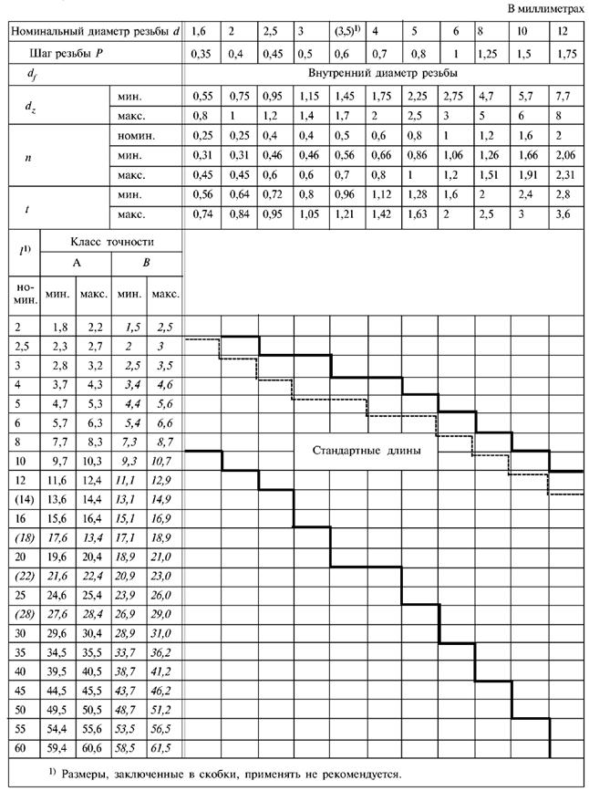 1.1 Размеры винтов должны соответствовать указанным на чертеже и в таблице 1.