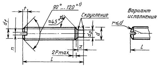 2) Угол 45° относится только, к части конца ниже внутреннего диаметра резьбы.