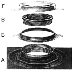 горловина; 2 - гофр; d1 - внутренний