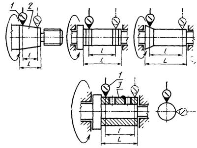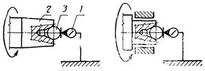 В дополнении к спецификациям, указанным в стандарте ИСО 280/1 правил приемки, следует проводить проверку торцов конических и цилиндрических поверхностей ведущего круга. Индикатор устанавливают перпендикулярно к проверяемой поверхности При измерении конических поверхностей корректировка показаний индикатора не проводится |
