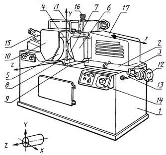 b) параллельность перемещения оси шлифовального шпинделя в плоскости перпендикулярной к плоскости правки; |