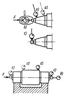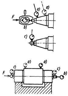 а) измерение радиального биения центрирующей поверхности; Примечание: проверка а) не применяется на станках с автоматической балансировкой круга |