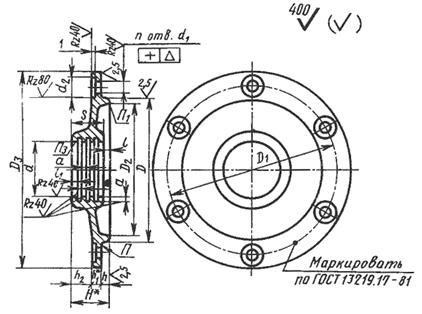 Пример условного обозначения средней торцовой крышки с канавками диаметром D = 140 мм, dном = 60 мм: