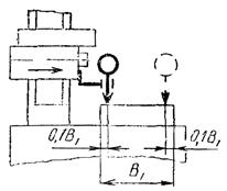 В горизонтальном направлении шлифовальную бабку с горизонтальным шпинделем устанавливают так, чтобы ось среднего паза стола совпала с вертикальной плоскостью, отстоящей от основания конуса шпинделя на l.