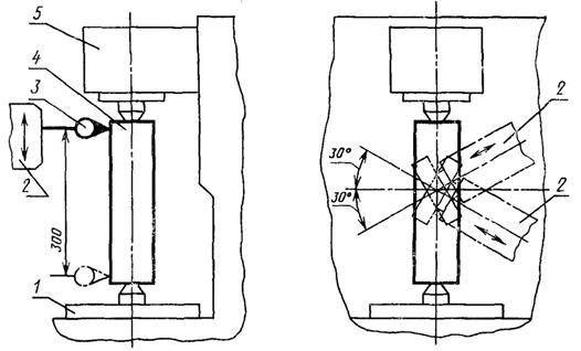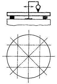 Измерения производят двумя измерительными приборами одновременно при нескольких оборотах шпинделя изделия или стола.