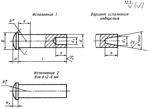 1.2. Отверстие в стержне заклепок может быть выполнено как сверлением, так и высадкой, форма дна отверстия не регламентируется.