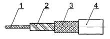 Оплетка из медных посеребренных проволок номинальным диаметром 0,1 мм; плотность оплетки 85 % - 92 %; угол оплетки 50° - 60° |