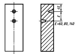2.3 Изделия, приведенные на рисунках 1, 2, 4 - 6, кроме изделий длиной 230 мм, изготовляются с отверстиями для штырей по рисункам 8 - 11. Размеры, не указанные на рисунках 9 - 11, должны соответствовать данным рисунка 8.