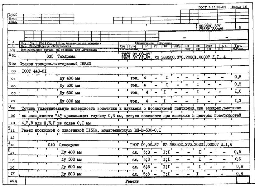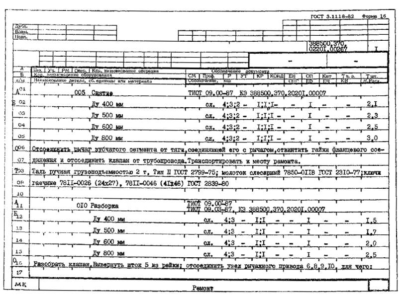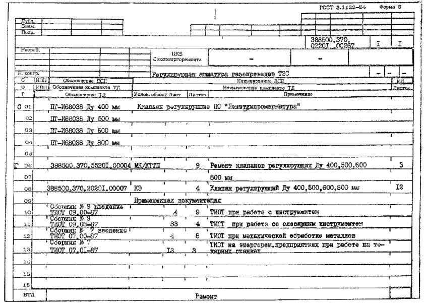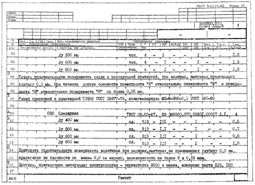 РЕМОНТА РЕГУЛИРУЮЩЕЙ АРМАТУРЫ ГАЗОПРОВОДОВ ТЭС