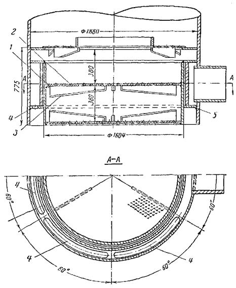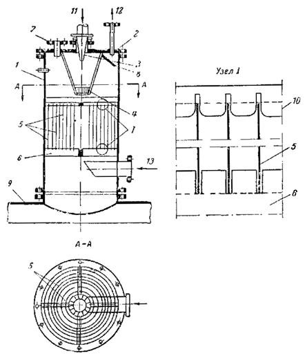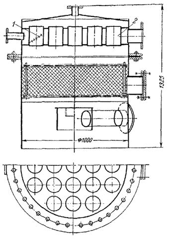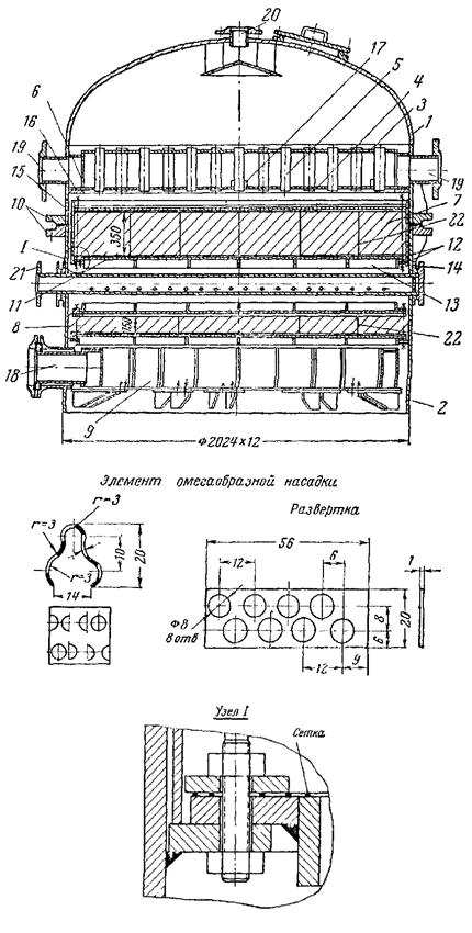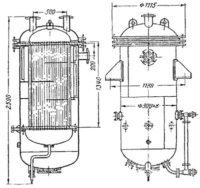 В основу конструкции охладителя выпара положена секция водоводяного подогревателя для тепловых сетей с установкой на корпусе двух линзовых компенсаторов (рис. VI-1).