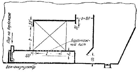 Площадь поперечного сечения опускного канала вспомогательного отсека |