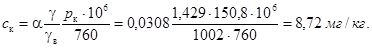 называют коэффициентом абсорбции, или коэффициентом Бунзена. Поскольку γ0 ≈ 1000 кг/м3, величина c по формуле (1-2) выражает также растворимость в мг/кг.