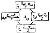 2) подсчитать средние арифметические значения осевых зазоров δв; δн; δл; δп. По результатам записи круговых диаграмм определить И1 и И2, а также Иср и их значения занести в круговую диаграмму.