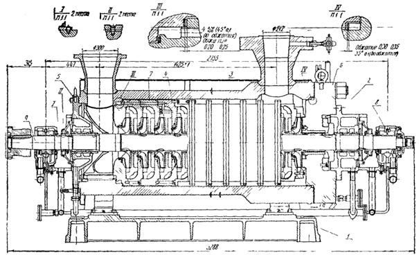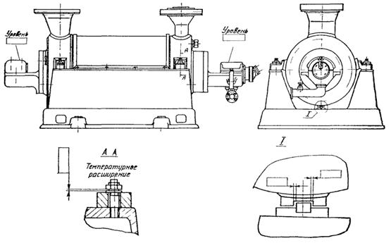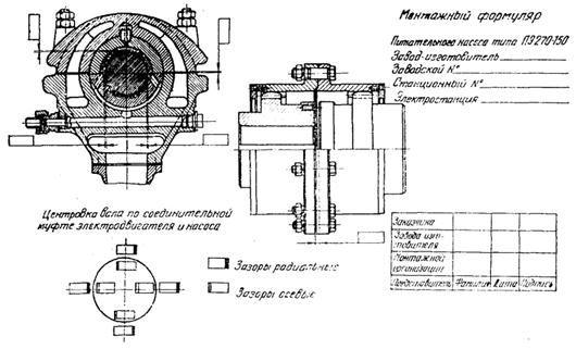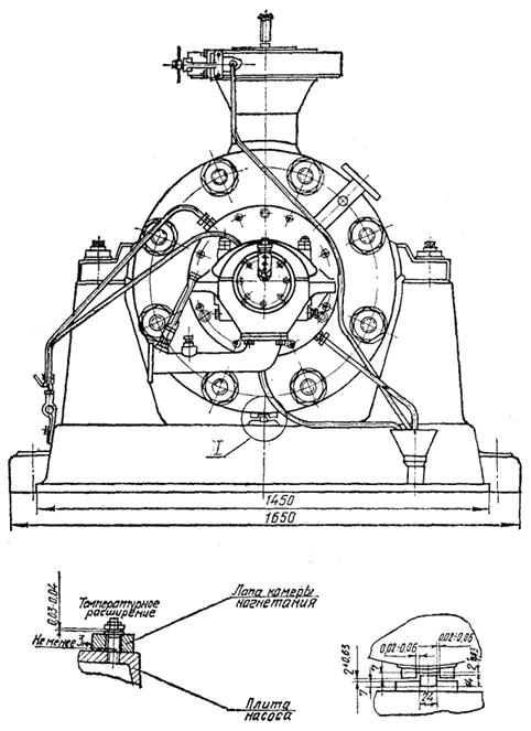 6.1.6. Если корпус насоса снимался с плиты, при его установке на плиту необходимо выдержать зазоры по продольным и поперечным шпонкам, а также между головками болтов и дистанционными шайбами. Зазоры указаны в сборочном чертеже насоса.