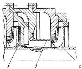 6.3.6. Проверить осевой разбег ротора, перемещая его и переднее и заднее крайние положения и установив монтажную втулку для фиксации колес. Осевой разбег должен быть в сторону всасывания не менее 3 мм, в сторону нагнетания - 2,5 мм. Надеть на вал разгрузочный диск, резиновое уплотнительное кольцо, нажимное кольцо, навинтить гайку и затянуть ключом. Надеть все остальные детали.