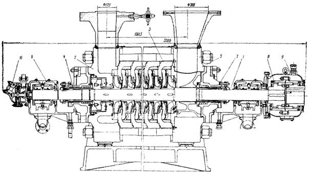 снять корпус указателя осевого сдвига и крышки подшипников, вынуть вкладыши, снять кольца для смазки и маслоотбойные кольца, уплотнительные кольца подшипников, корпуса подшипников, торцовые крышки концевых уплотнений и водоотбойные кольца;