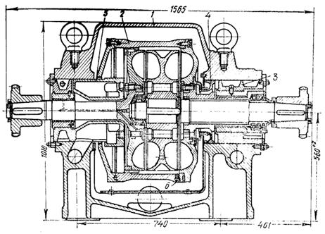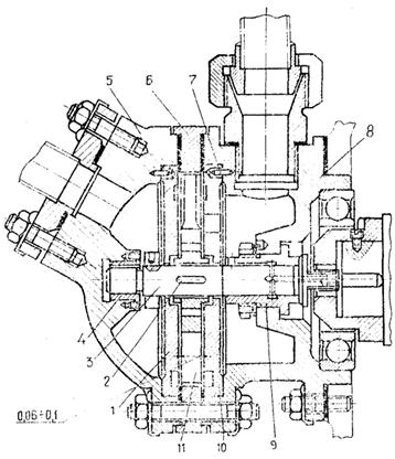 отсоединить от крышки нагнетания и снять при помощи крана заднее концевое уплотнение, отвернуть гайки и снять заднюю рубашку вала и разгрузочный диск;