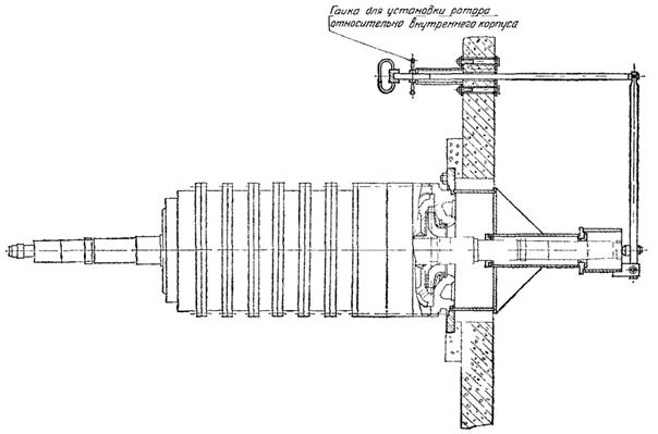 Ротор не должен быть зажат деталями внутреннего корпуса, для чего следует проверить радиальные зазоры путем перемещения ротора в статоре, производя замеры при помощи индикаторов.