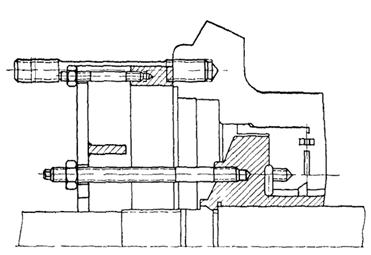 отвернуть гайки со шпилек, крепящих кронштейн заднего подшипника, и осторожно при помощи съемных болтов М16 снять кронштейн подшипника и сальниковую коробку нагнетания. Закрыть подшипник крышкой и уплотнительным кольцом.