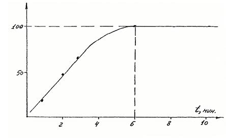 Рис. 5. Зависимость сигнала детектора от времени контакта фаз