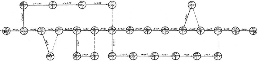 Применение индустриально-заводского метода ремонта (приложение 2, см. вклейку) дает возможность сократить время простоя выключателя в ремонте. По этой схеме ремонт резервных узлов (вала привода с барабаном, подвижной контактной системы полюса с механизмом, дугогасительной камеры и неподвижного розеточного контакта) ведется в условиях мастерских, что дает (с последующей заменой на подстанции) возможность исключить ряд работ на месте (операции 5 - 7, 11 - 13) с суммарными трудозатратами 4,95 чел.-ч и уменьшить время простоя выключателя в ремонте на 1,6 ч.