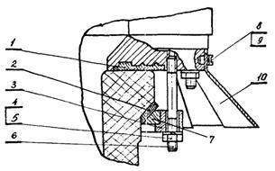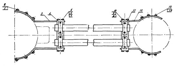 1 - болт; 2 - резиновая прокладка; 3 - полукольцо; 4 - накладка