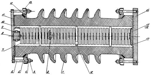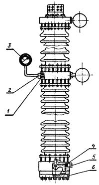 02.1. Отсоединить шины 15 (рис. 6) от фланцев омических делителей напряжения.