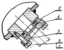 1 - болт М10×40; 2 - шайба пр. 10; 3 - фланец; 4 - кольцо; 5 - уплотнительная шайба